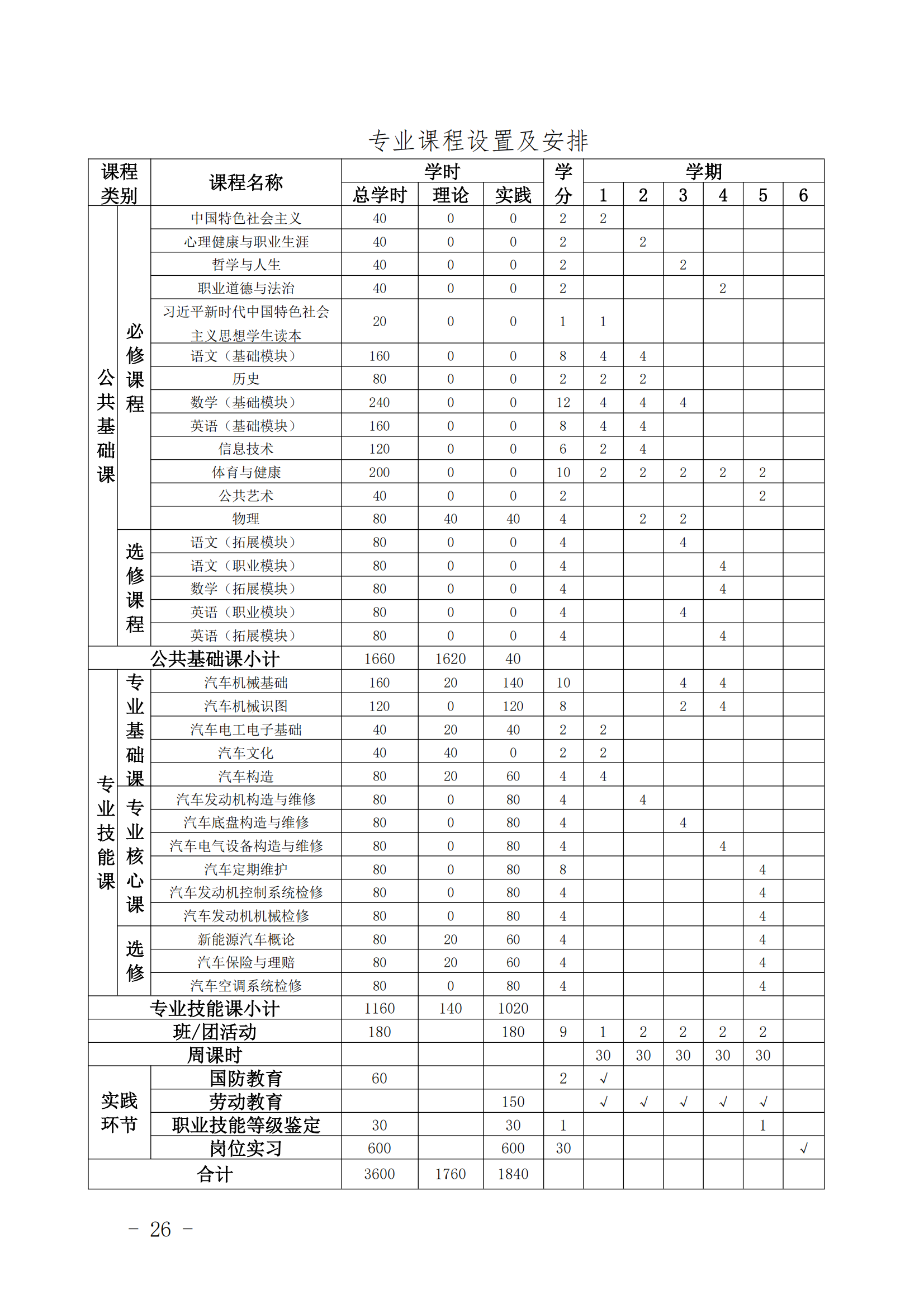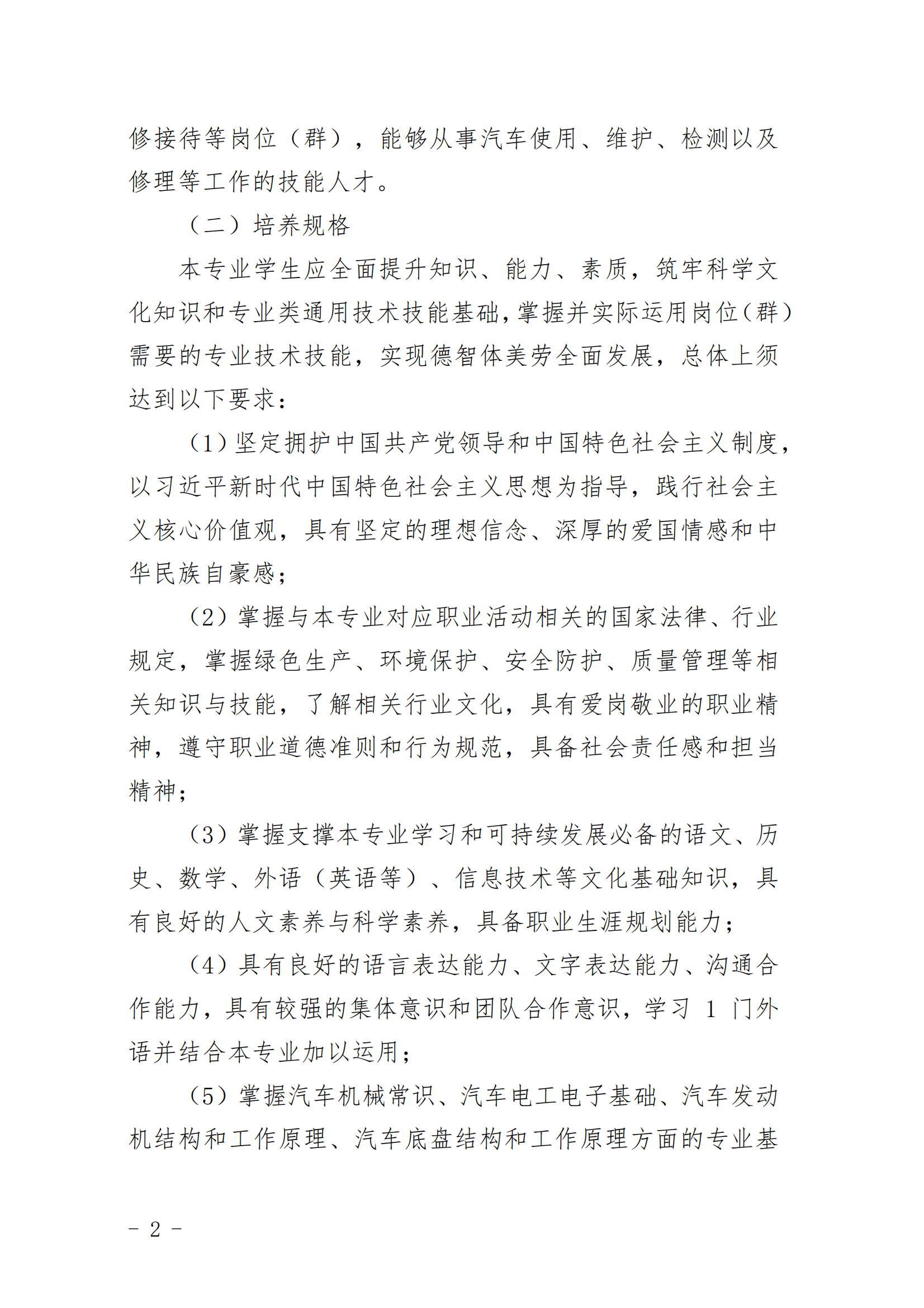 华体会体育网页版汽车运用与维修人才培养方案